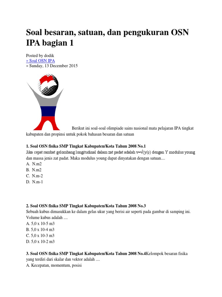 Latihan soal olimpiade sains smp biologi fisika kimia spring camp persiapan osn 2018 jumat 16 maret 2018 soal latihan olimpiade untuk persiapan osn 2018 dalam file pdf dapat di download pada list dibawah ini. Zaidan photon unair osn fisika. Materi soal pembahasan olimpiade sains smp mts lopi lengkap mata pelajaran.