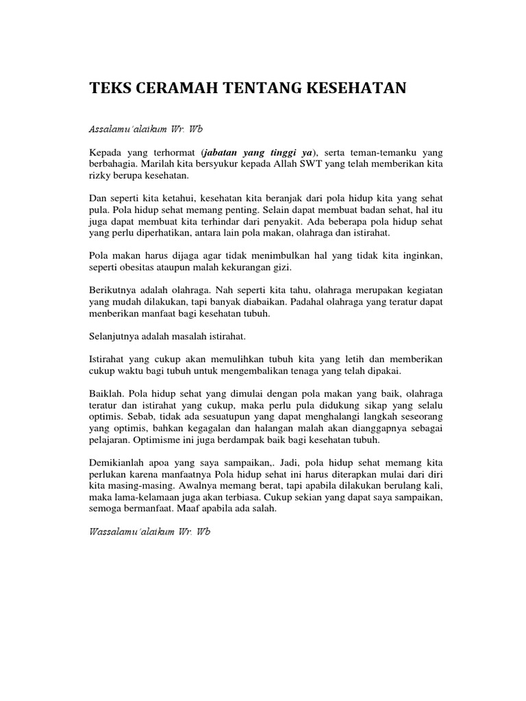 Doc Pidato Tentang Kesehatan Tubuh Sudar Mi Academia Edu