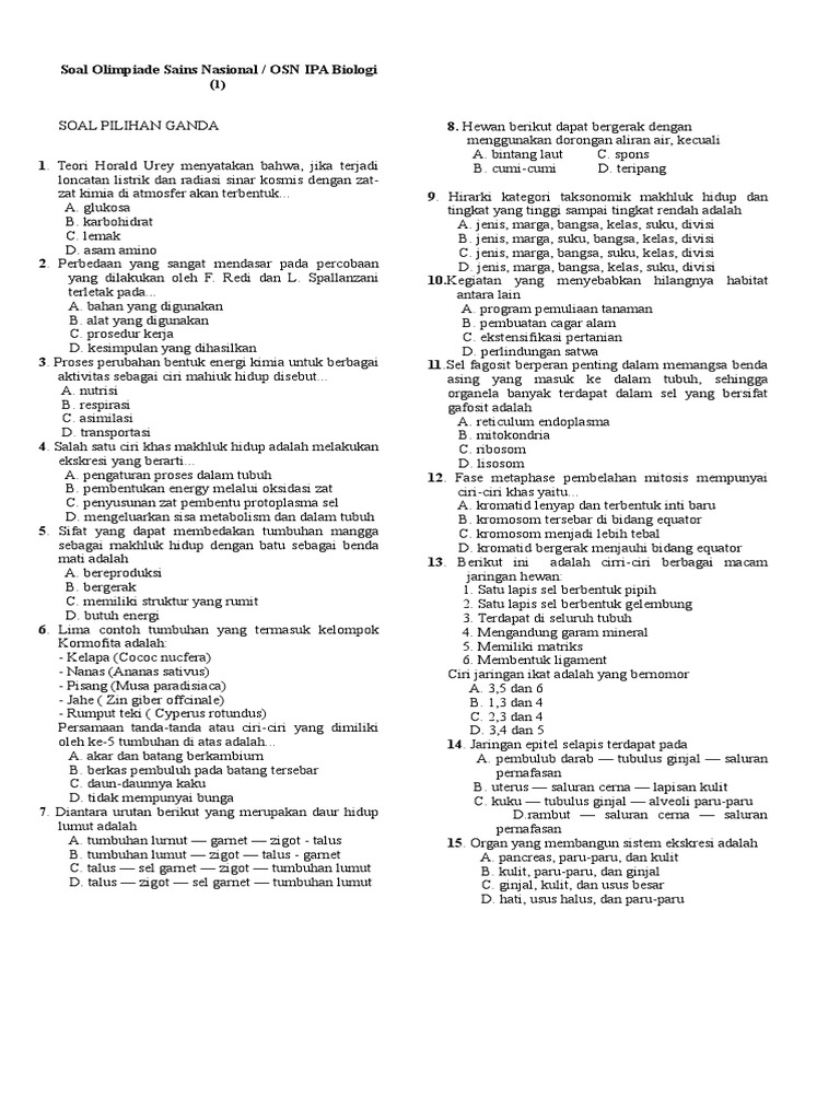 SOAL OSN BIOLOGI SMP. Pilihlah satu jawaban yang paling tepat soal nomor 1 sd. Soal Olimpiade Ipa SMP Hal Ini adalah sebagai sarana dasar dalam melakukan Ujian Nasional OSN tingkat provinsi sebagai Kompetisi Sains Nasional yang dapat.
