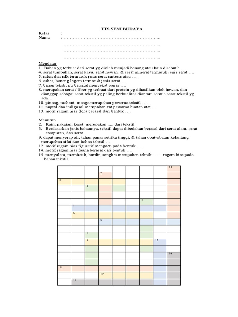 Contoh Tts 10 Soal Mendatar Dan Menurun Seni