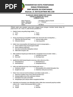 Contoh Soal Agama Katolik Kelas 7 Smp Semester 1 Dapatkan Contoh