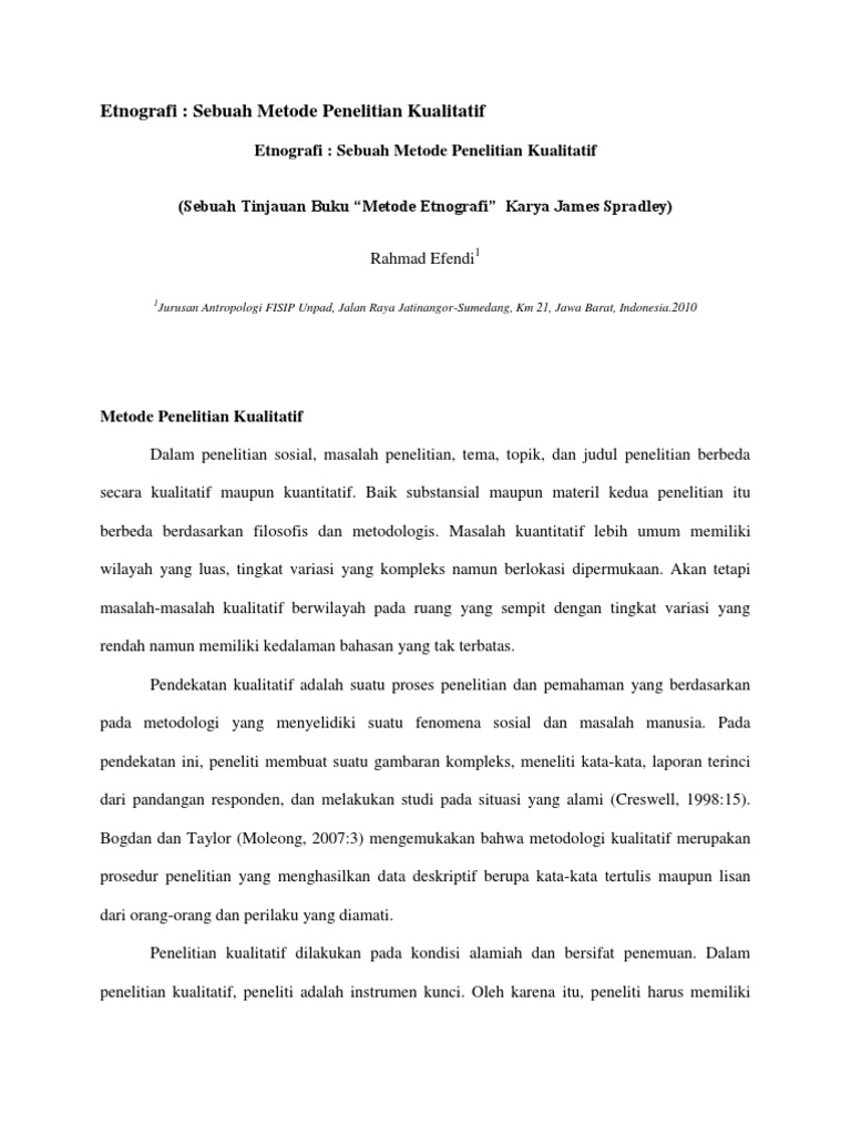 Penelitian etnografi terus berkembang sampai pada apa yang disebut dengan Etnografi baru 1960-an. Contoh Judul Proposal Skripsi Penelitian Kualitatif Pendekatan Etnografi. Studi etnografi gerakan pangan lokal anak muda Penggunaan alat pelindung diri pengunduh sarang burung walet.
